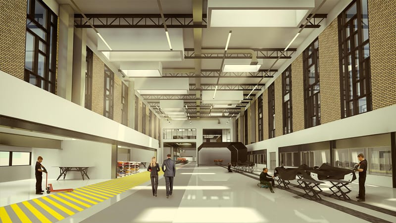 Wish Architects were appointed to revamp and existing, disused factory in Milan. The factory used to operate as an Administration Building for a world renowned company who ceased trading in the 1980's. The client wanted to reconfigure the space to operate as an automotive production factory. Wish Architects proposed a design in-line with the original character of the building whilst carefully merging the traditional architectural language with contemporary design cues. The visualisations were produced to allow the client to experience the atmospheric quality of each space and gauge an understanding of how the automotive production process would come together through implementation of the new design layout.